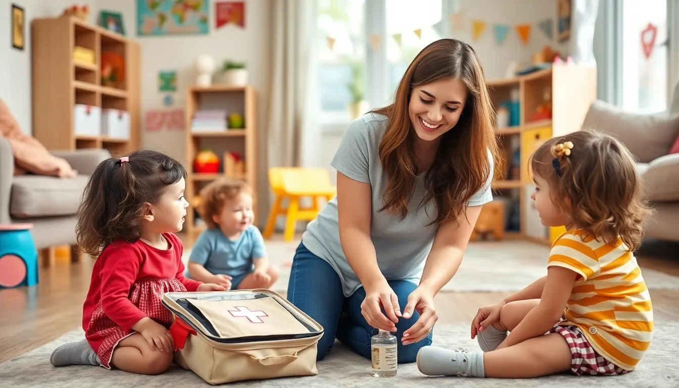 Understanding first aid basics is essential for babysitters. Familiarity with CPR techniques, choking response, and how to treat minor wounds is crucial. They should keep a first aid kit readily accessible, containing items such as bandages, antiseptic wipes, and adhesive tape. Knowing emergency contact numbers guarantees swift communication in case of accidents. It’s advisable to attend a first aid course to boost confidence and readiness. Training equips caregivers to handle unexpected situations with composure.